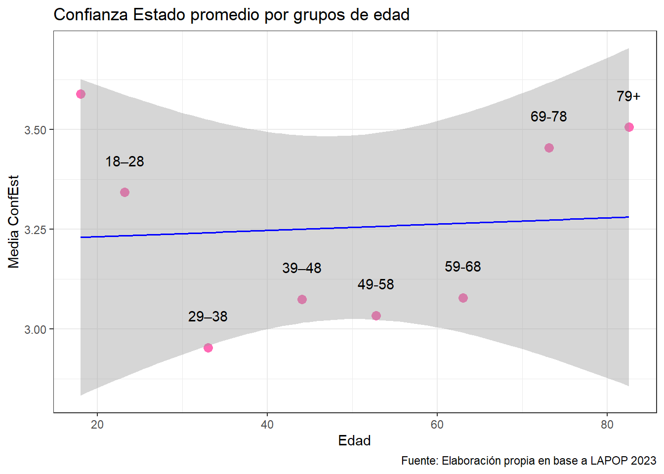 Para finalizar el análisis descriptivo de la confianza en el Estado en Chile, se elaboró una comparación de promedios de confianza en el Estado según los distintos grupos etarios.